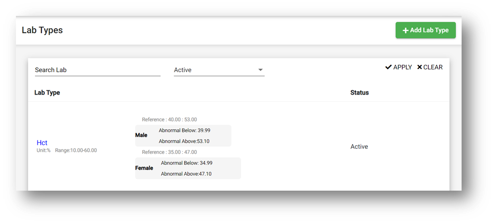 Figure 4 – Lab Types (ADMIN FUNCTION)
