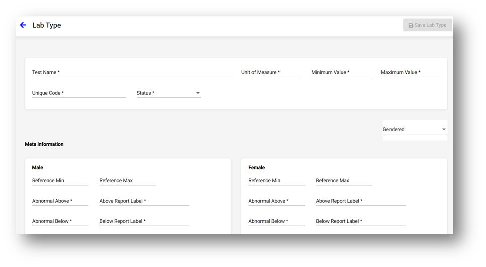 If a lab is needing to be mapped, the user “Add Lab Type” button and input the appropriate lab parameters for the lab that is being added.