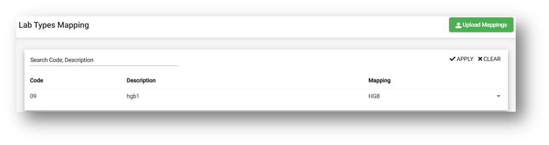 Once completed , the lab will be display as shown below. The user will then click “Upload Mapping” to create the new mapping.