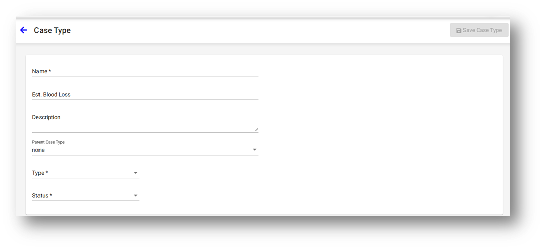 The user will click on Case Types on the left-hand side tool bar, then click the “+Add Case Type” to add a case type. Once updated, click on “Save Case Type”.