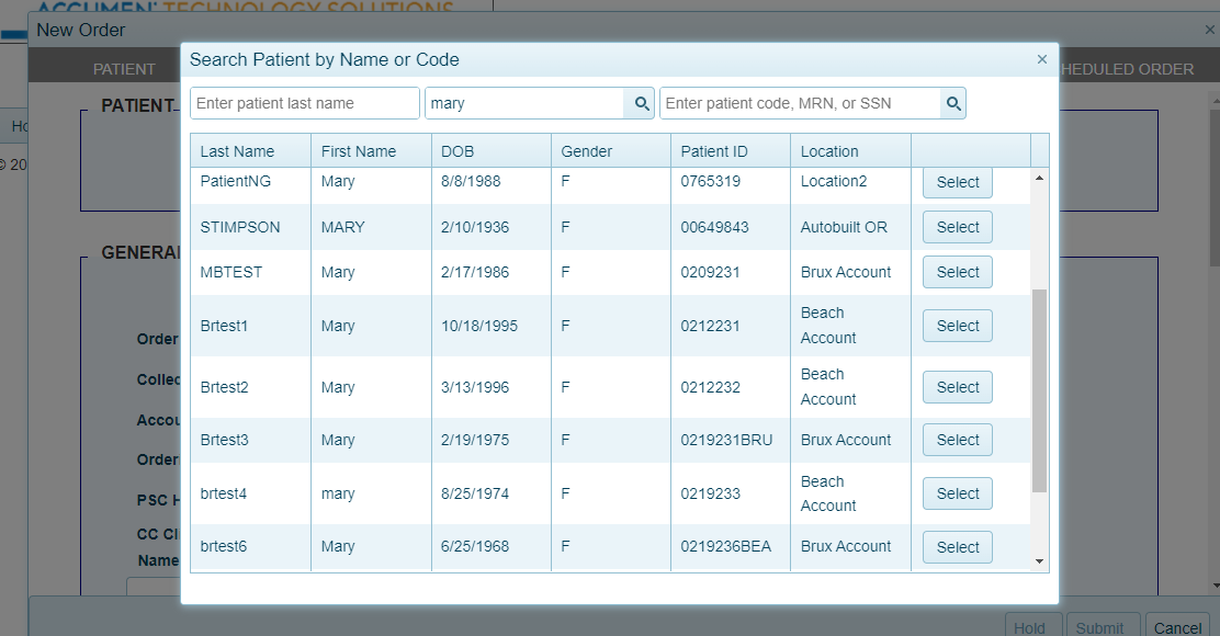 Patient Location Filtering Enhancement: Users that need to place orders for multiple locations and/or accounts previously had to link all accounts to their user profile. This enhancement allows the option to set a user to see all locations/accounts linked to a patient based on their profile settings. This can be found in the Order - New Order menu.
