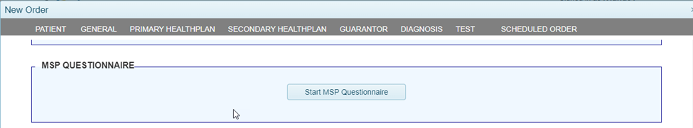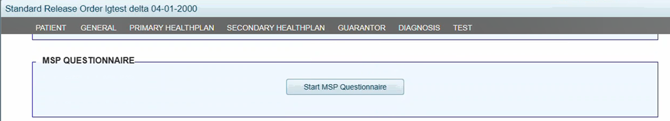 b. With MSP Questionnaire turned on at the role level, the MSP Questionnaire section will be visible on the New order page, Patient Management page and Release Order page if the patient has a Healthplan entered with an insurance type of Medicare.