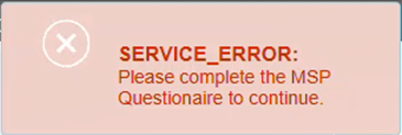 Figure 8- Error message if attempt to save a record without completing the MSP Questionnaire