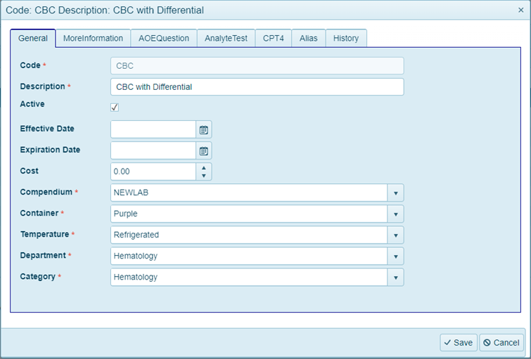 New fields have been added into the file maintenance screens to increase the OM Portal’s capabilities to support laboratories with multiple performing labs and test compendiums and allow for different specimen requirements per performing facility.