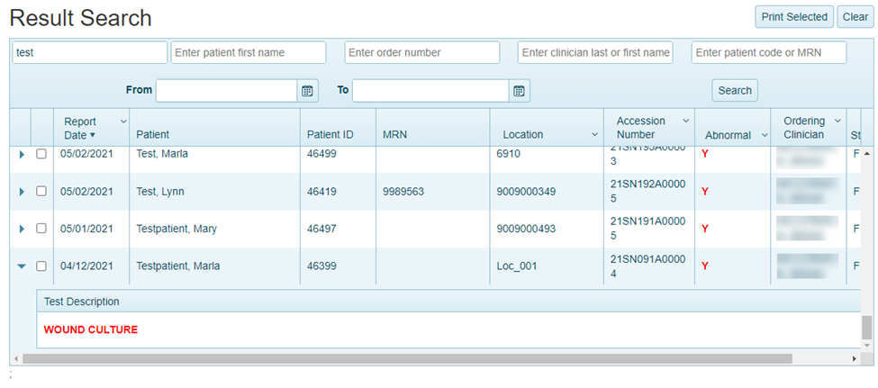 A correction was made to resolve a reported issue in the result search screens when the configuration setting was enabled to show the tests in an order. Opening the test dropdown menu did not increase the length of the page making it difficult to review the last reports on the search list. The Screens have been updated to improve the scrolling.